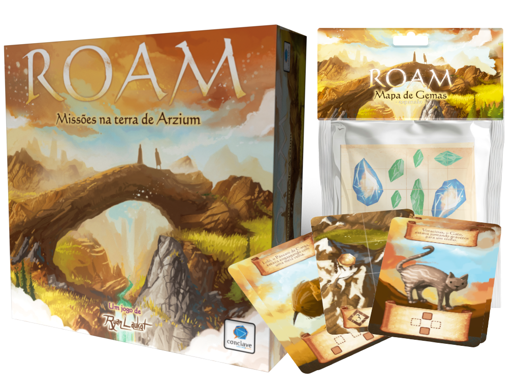 Combo contendo Roam Jogo Base + Expansão Mapa de Gemas + Cartas Promo Animais.