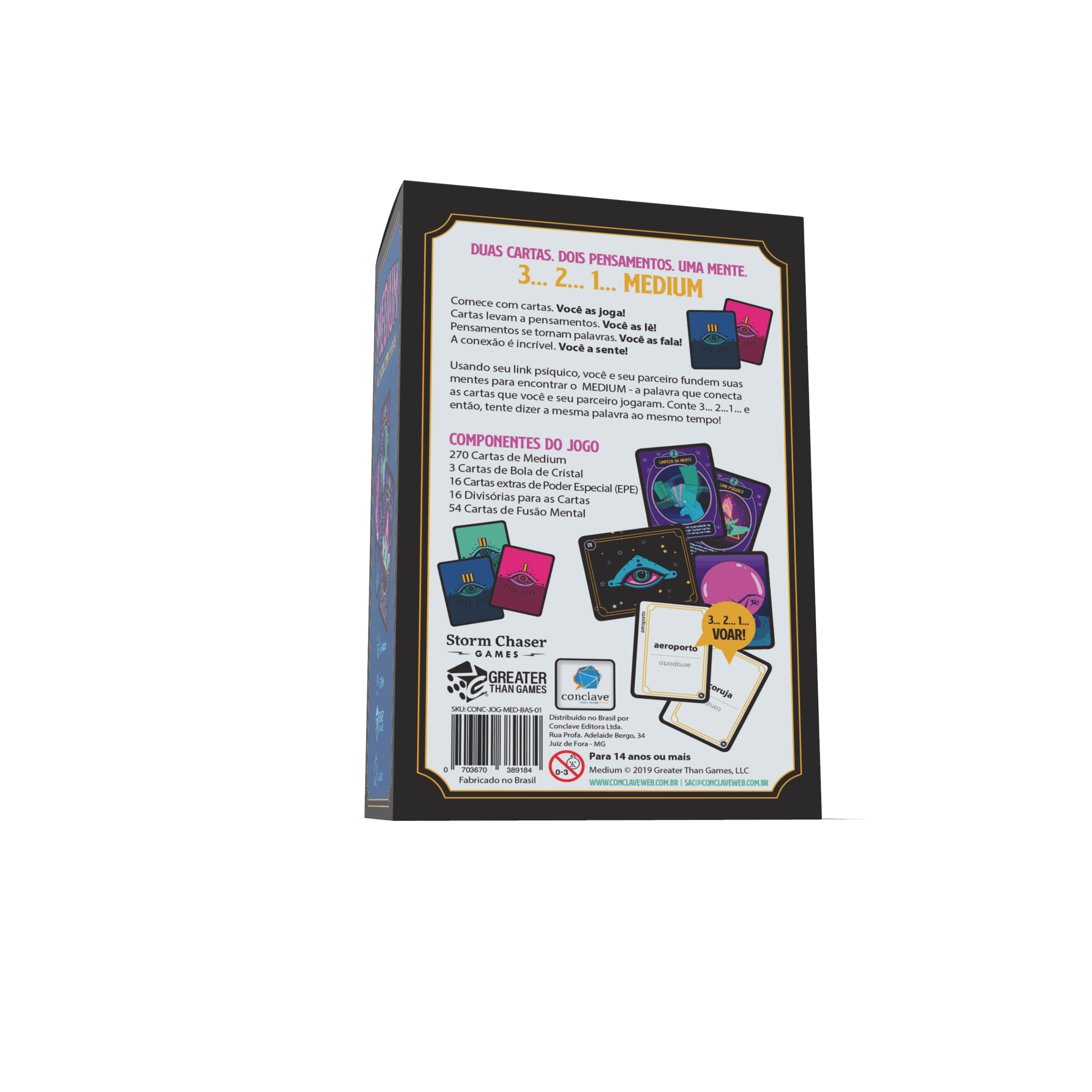 Usando seu link psíquico, você e seu parceiro fundem suas mentes para encontrar o MEDIUM – a palavra que conectaas cartas que você e seu parceiro jogaram. Conte 3… 2…1… e então, tente dizer a mesma palavra ao mesmo tempo!
